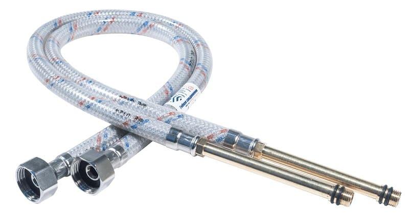 Комплект гибкой подводки для смесителя с длинными соединительными штуцерами.